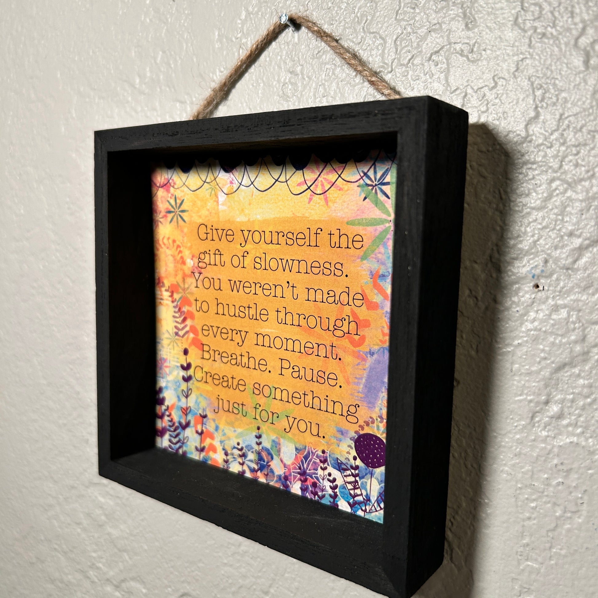 This piece invites you to slow down, take a breath, and step away from the hustle. Life moves fast—but you don’t have to. Sometimes the most meaningful moments come when you pause, let go of the rush, and create something just for you. Let this artwork be your gentle reminder to breathe, rest, and be present.