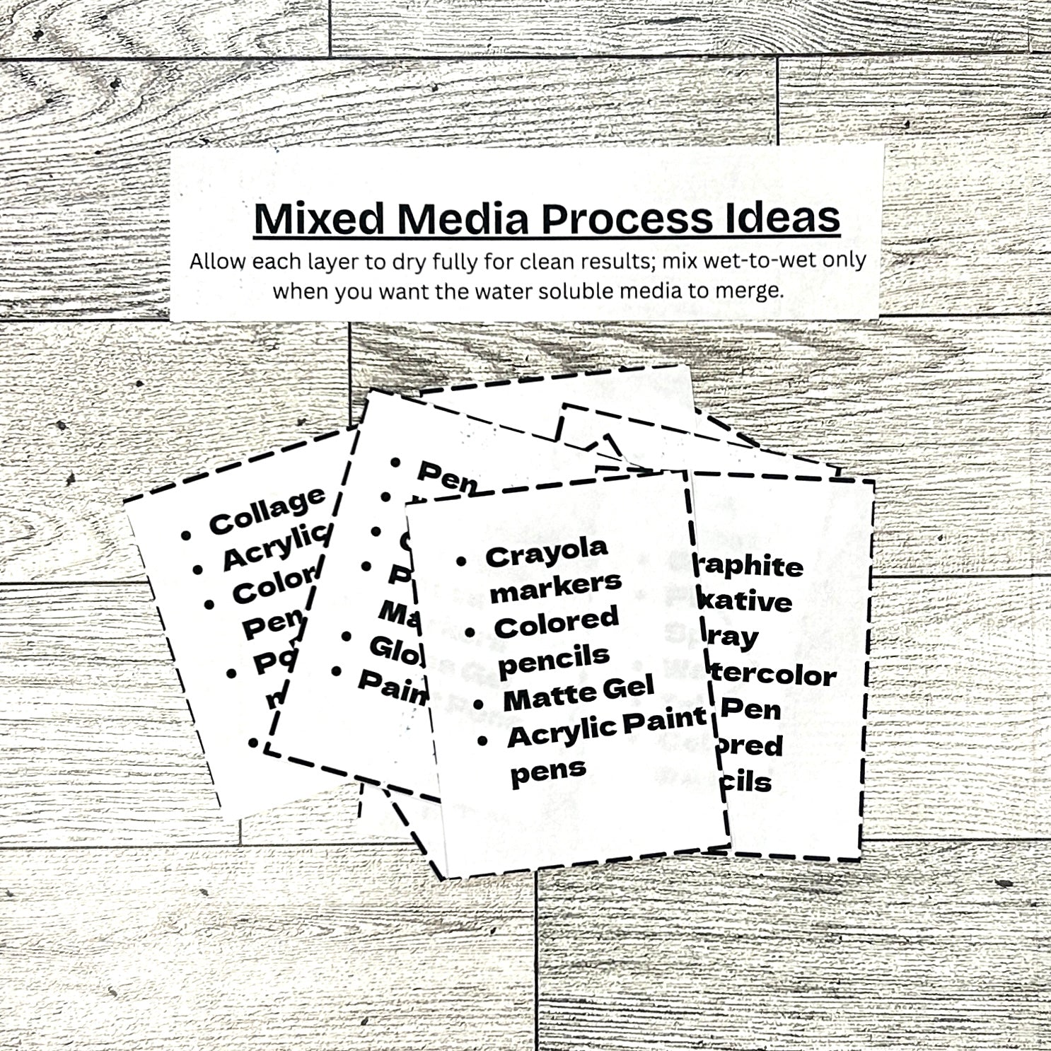 *Mixed Media Materials Guide showing the safest order for layering paints, inks, and dry media — keeping your work durable and archival